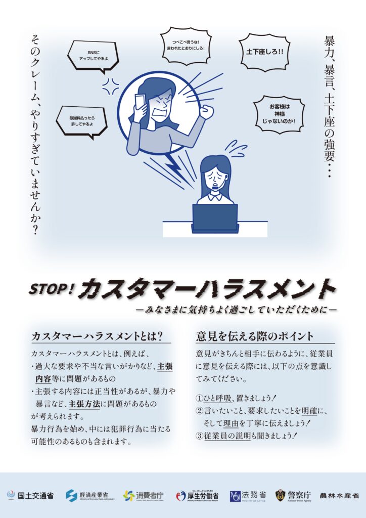 当社ではカスタマーハラスメント防止の推進をしております。どうぞご協力の程よろしくお願いいたします。